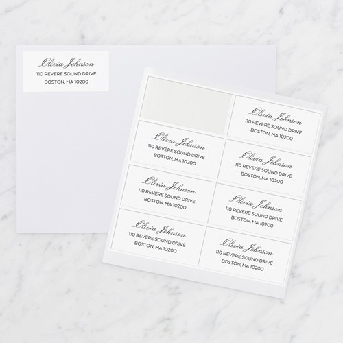 Address your envelopes with stylish address labels. Corresponding invitations gift tags and thank you cards are also available.
