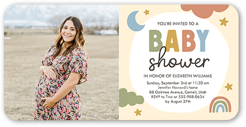Shower her with love and a stylish baby shower invitation. Personalize it with the party details.