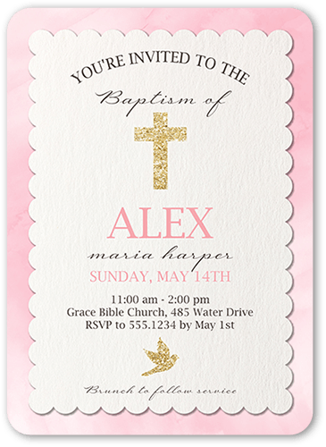 Invite everyone to this memorable and blessed occasion. Personalize this baptism invitation with all the event details.