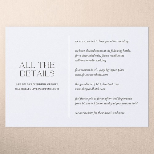 Make your wedding invitations even more personal with enclosure cards, designed to match your wedding invitations, and customized with the details of your big day.