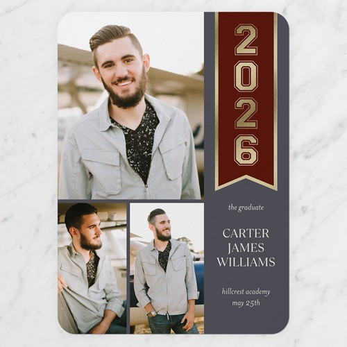 Celebrate the new graduate with this unique graduation announcement. Personalize with the graduate's name and the event details.