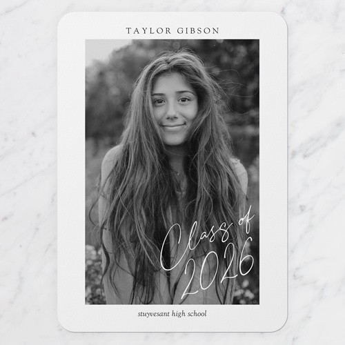 Celebrate the new graduate with this unique graduation announcement. Personalize with the graduate's name and the event details.