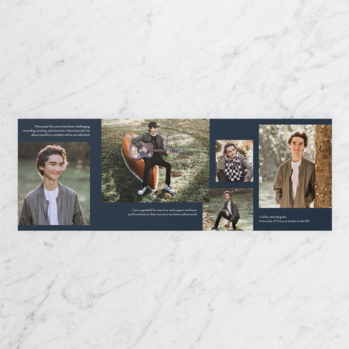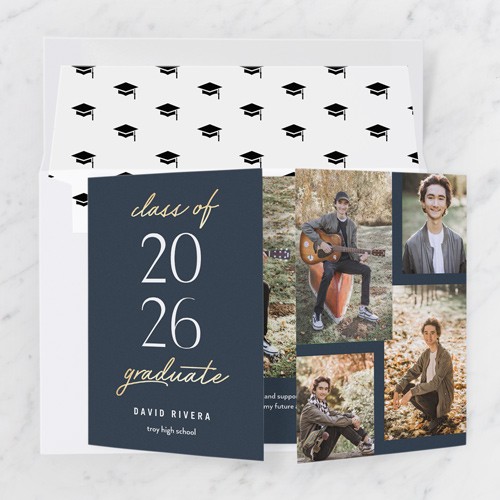 Celebrate the new graduate with this unique graduation announcement. Personalize with the graduate's name and the event details.