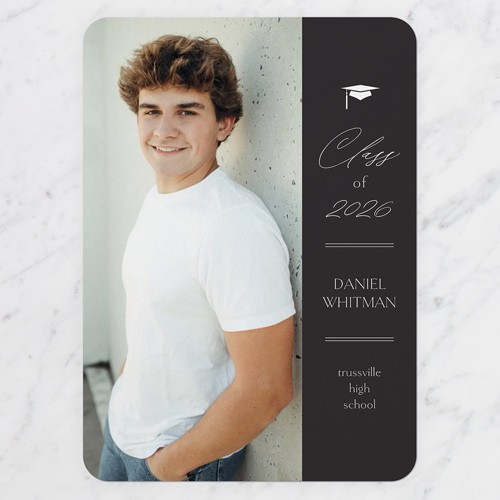 Celebrate the new graduate with this unique graduation announcement. Personalize with the graduate's name and the event details.