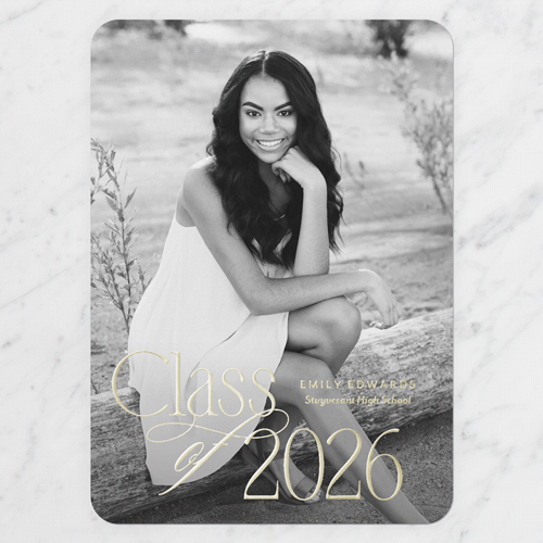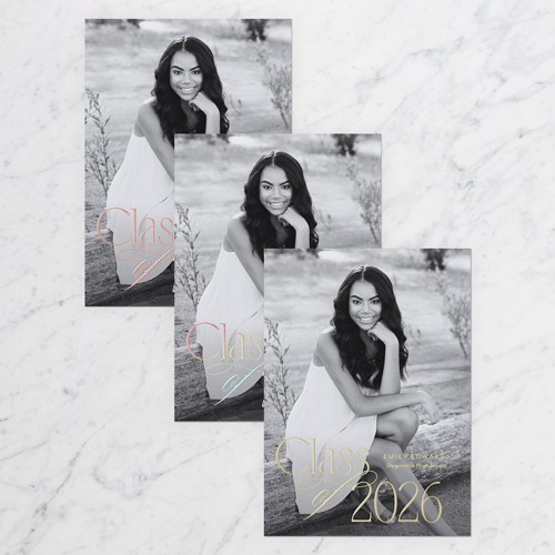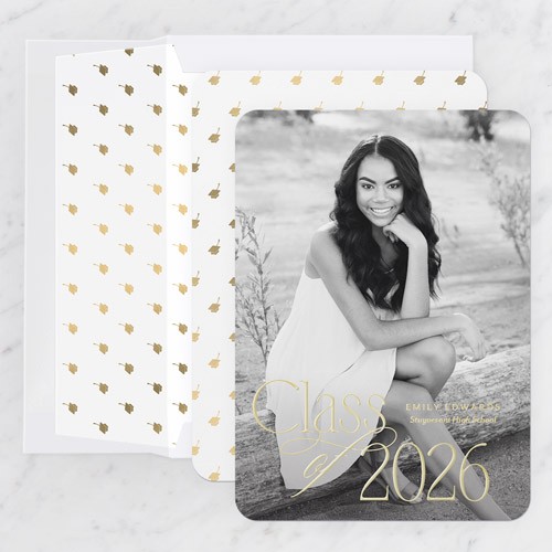 Celebrate the new graduate with this unique graduation announcement. Personalize with the graduate's name and the event details.