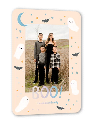 Trick or Treat? Send frightfully fantastic greetings with a personalized Halloween card. Just add favorite photos and names.