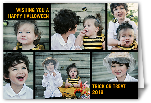 Trick or Treat? Send frightfully fantastic greetings with a personalized Halloween card. Just add favorite photos and names.