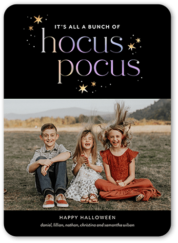 Trick or Treat? Send frightfully fantastic greetings with a personalized Halloween card. Just add favorite photos and names.