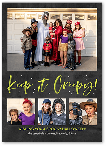 Trick or Treat? Send frightfully fantastic greetings with a personalized Halloween card. Just add favorite photos and names.