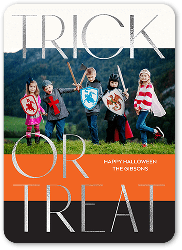 Trick or Treat? Send frightfully fantastic greetings with a personalized Halloween card. Just add favorite photos and names.