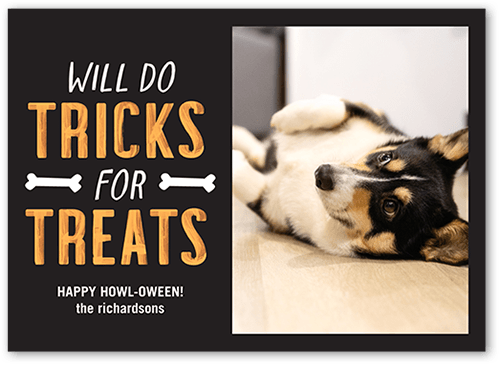 Trick or Treat? Send frightfully fantastic greetings with a personalized Halloween card. Just add favorite photos and names.