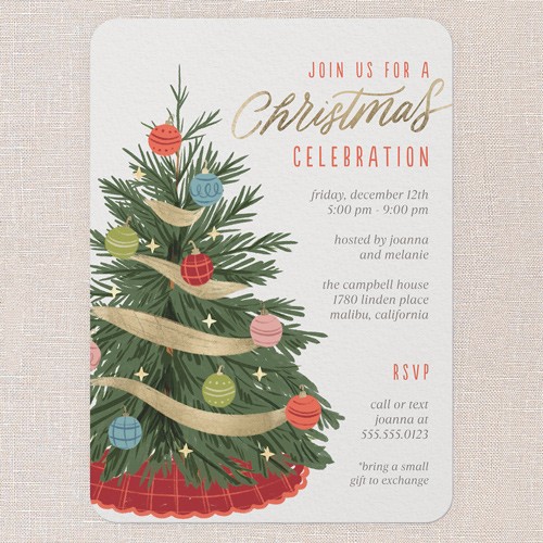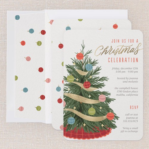 Ribboned Pine Holiday Invitation