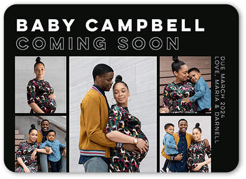 Share your exciting news with this cheerful pregnancy announcement. Let others know your little one is on the way with a happy baby belly, your favorite picture and an expected arrival date.