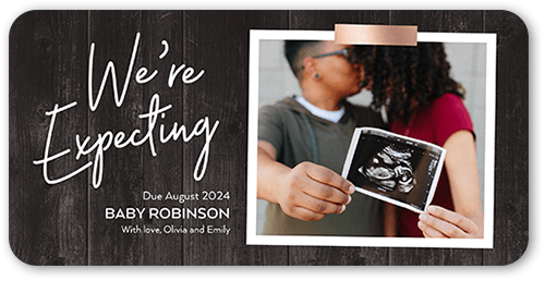 Share your exciting news with this cheerful pregnancy announcement. Let others know your little one is on the way with a happy baby belly, your favorite picture and an expected arrival date.