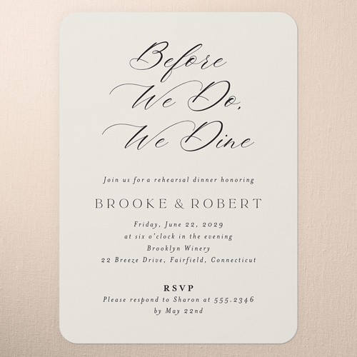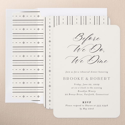 The big night before the big day. Invite all your guests with stylish rehearsal dinner invitations.