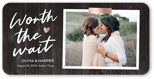 I thee wed. Announce your wedding in style with a favorite photo and the celebration details on this wedding announcement.