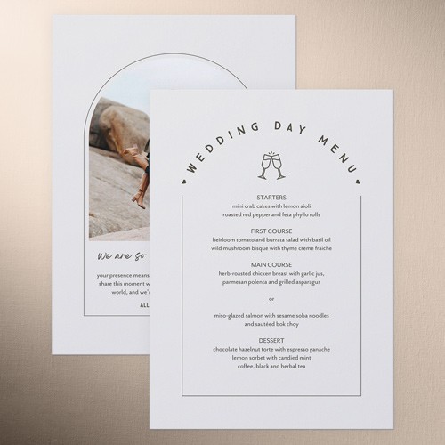 Give your wedding guests a taste of what's to come with an unforgettable menu. Coordinate the design with your wedding stationery suite for the perfect match.