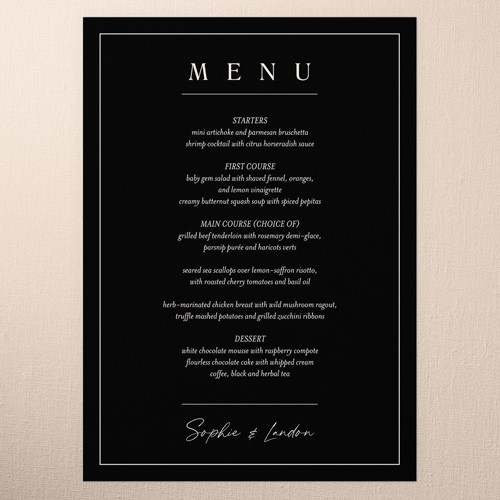 Give your wedding guests a taste of what's to come with an unforgettable menu. Coordinate the design with your wedding stationery suite for the perfect match.