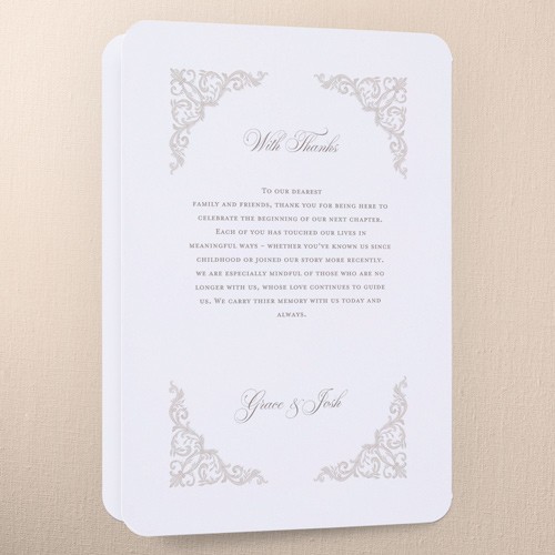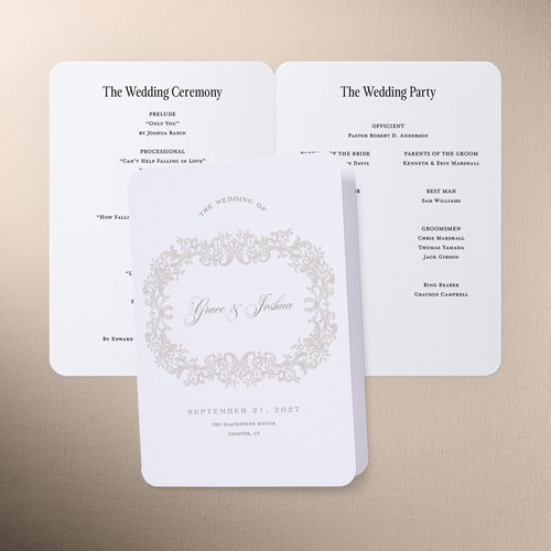 Share all the details of your big day with a personalized program that's sure to impress your, guests. It's the perfect way to make them feel more a part of the ceremony. Select a program, that coordinates with your invitations, RSVP cards, place cards and more.