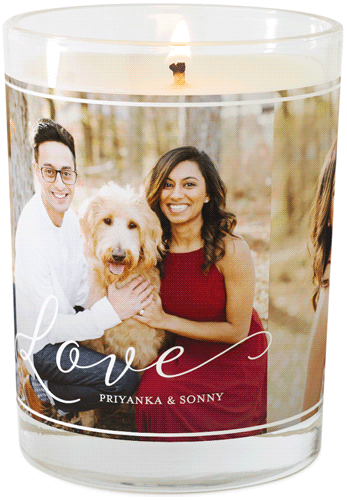Make any space feel like home with a personalized glass jar candle that lights up your favorite photos from within. The candle is made with an all-natural soy blend and essential oils; available in four fragrances: Grapefruit Blossom, Ocean Breeze, Fireside Spice and Unscented. Personalize with a favorite photo or monogram. Candle comes packed in a gift-ready box.