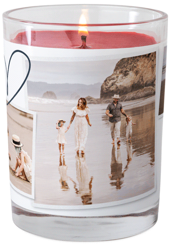 Make any space feel like home with a personalized glass jar candle that lights up your favorite photos from within. The candle is made with an all-natural soy blend and essential oils; available in four fragrances: Grapefruit Blossom, Ocean Breeze, Fireside Spice and Unscented. Personalize with a favorite photo or monogram. Candle comes packed in a gift-ready box.