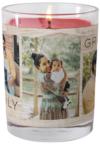 Make any space feel like home with a personalized glass jar candle that lights up your favorite photos from within. The candle is made with an all-natural soy blend and essential oils; available in two fragrances: Grapefruit Blossom and Fireside Spice. Personalize with a favorite photo or monogram. Candle comes packed in a gift-ready box.