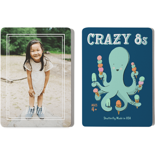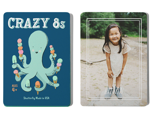 Make game time extra fun with personalized card games, available in the classic children's games Go Fish and Crazy 8s. The cards can be personalized with photos and text on one side and feature whimsical illustrations on the other. Both games provide a fun and educational way for children to learn their numbers, work on strategy, and decision-making skills. Great for home play or use in the classroom. Treat the special kids in your life to a one-of-a-kind gift.