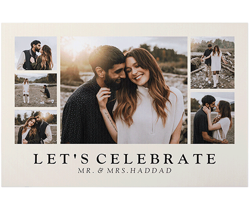 Celebration photo boards allow you to display meaningful photos in a design that reflects the occasion. Make one for a graduation, an anniversary party, a wedding or even a memorial service. Available in landscape and portrait orientations.