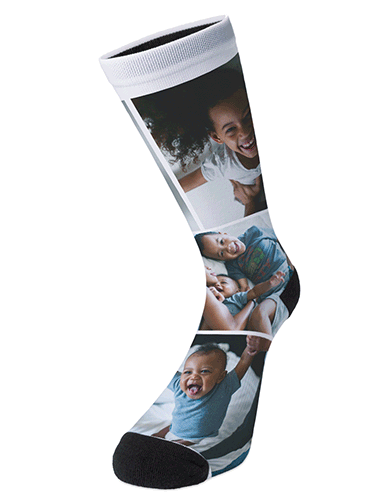 This matching pair of socks allows for 360 personalization and is a fun gift for any occasion, including birthdays, a grad celebration, holidays or even a wedding event. Make them as cute or as funny as you’d like with floating faces of your fave people, your pets and beyond.