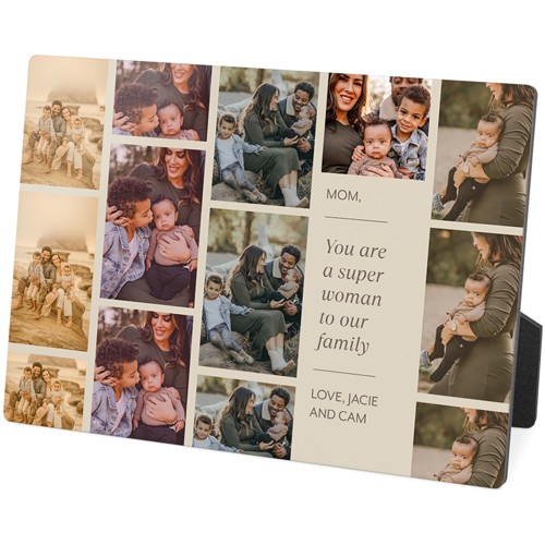 Showcase favorite photos and turn any space into a happy place with desktop plaques. Choose from different shapes, stylish backgrounds, and layouts for one or more photos for a unique look. Plaques include a built-in easel for horizontal or vertical display.