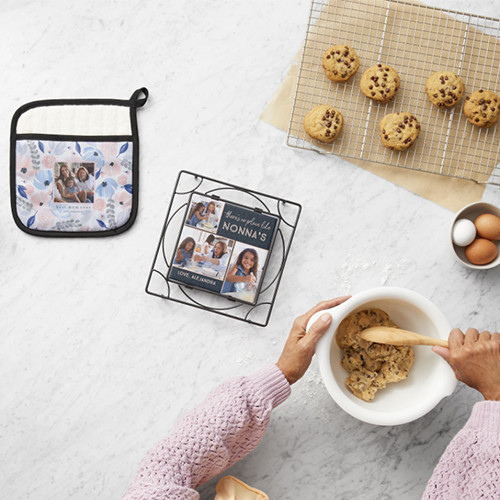 Give your favorite chef a pot holder made just for them. Personalize the front pocket with one of our designs or your own favorite photos. Goes great with our personalized tea towels.