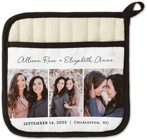 Give your favorite chef a pot holder made just for them. Personalize the front pocket with one of our designs or your own favorite photos. Goes great with our personalized tea towels.