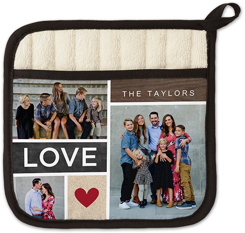 Give your favorite chef a pot holder made just for them. Personalize the front pocket with one of our designs or your own favorite photos. Goes great with our personalized tea towels.
