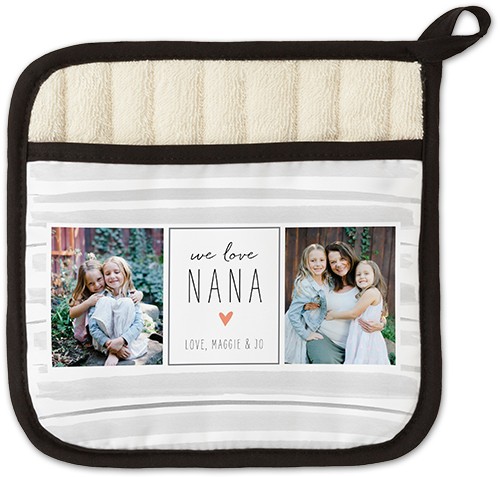 Give your favorite chef a pot holder made just for them. Personalize the front pocket with one of our designs or your own favorite photos. Goes great with our personalized tea towels.