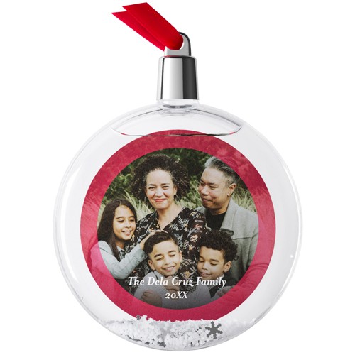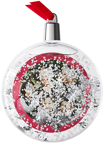 Embrace the magic of the holiday season by bringing cherished memories to life in your own custom snow globe, complete with swirling white snow and silver snowflakes. This mesmerizing liquid-filled tree ornament lets you festively showcase favorite photos, transforming special moments into whimsical wintertime scenes. With the option to personalize with a loved one’s name or a heartfelt holiday message, this ornament makes a delightful keepsake to commemorate special occasions or a truly one-of-a-kind gift they’ll treasure forever.