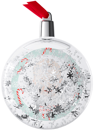 • Liquid filled; with white snow and silver snowflakes