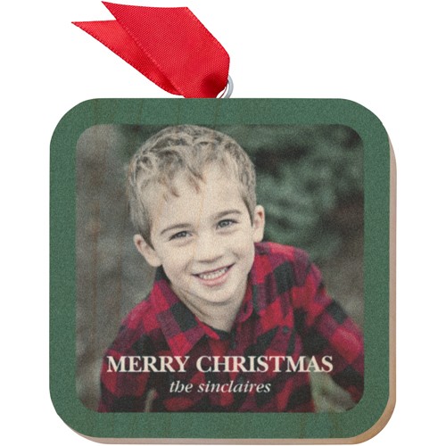 Add a rustic vibe to your Christmas tree or holiday hearth with our elegant wooden ornament. Available in square and circle shapes with front photo space on both.