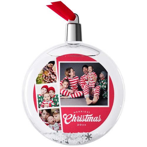 Embrace the magic of the holiday season by bringing cherished memories to life in your own custom snow globe, complete with swirling white snow and silver snowflakes. This mesmerizing liquid-filled tree ornament lets you festively showcase favorite photos, transforming special moments into whimsical wintertime scenes. With the option to personalize with a loved one’s name or a heartfelt holiday message, this ornament makes a delightful keepsake to commemorate special occasions or a truly one-of-a-kind gift they’ll treasure forever.