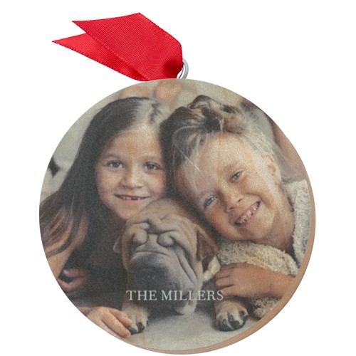 Add a rustic vibe to your Christmas tree or holiday hearth with our elegant wooden ornament. Available in square and circle shapes with front photo space on both.