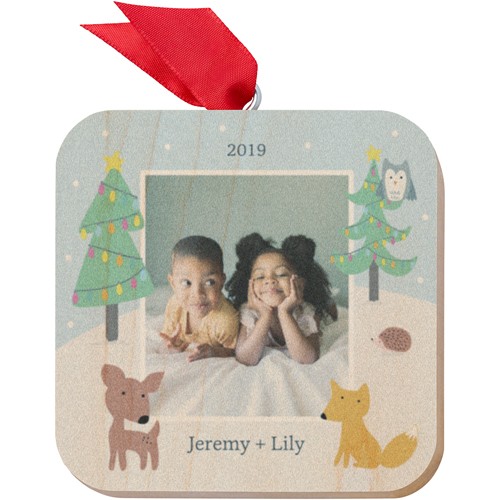 Add a rustic vibe to your Christmas tree or holiday hearth with our elegant wooden ornament. Available in square and circle shapes with front photo space on both.