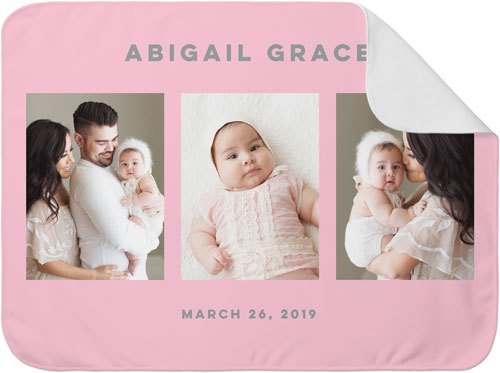 Give baby a blanket that is as personal as a handmade one, but without the hassle! Create this keepsake using the child’s name, birthdate or colors that complement the nursery.