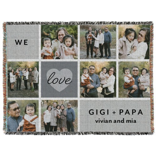 Grid Heart Love Script Woven Photo Blanket
