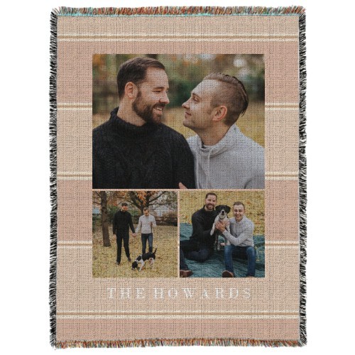Snuggle up with a woven blanket that weaves your memories into a soft and cozy personalized throw. Your favorite photos and unique designs are brought to life by the intricately woven, individually dyed fibers that weave your memories and signature styles together into a made-to-order, truly one-of-a-kind creation. Choose from stylish backgrounds, complementary designs and unique layouts to accentuate your own personal photos, custom text or original designs. Or, select from a variety of ready-to-buy artist designs for an effortlessly eye-catching piece that instantly enhances any home aesthetic or easily freshens up your existing decor. Hand-finished to ensure uniqueness and durability, this blanket’s jacquard woven style provides true depth, rich texture and softness, making it the ideal decorative throw or unique wall tapestry. Great for cold mornings on the couch, a day at the game, a lovely picnic, music festivals or other outdoor events and more.