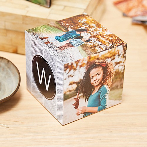 Turn your favorite pictures into a decorative wooden photo cube that's ready to display.
