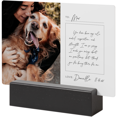 A tabletop metal print is a great personalized addition to coordinate with your modern aesthetic. Pick a black or natural Oak wood block to match your photos and space. This would also make a great gift for friends, parents or grandparents so you can remember favorite memories together.