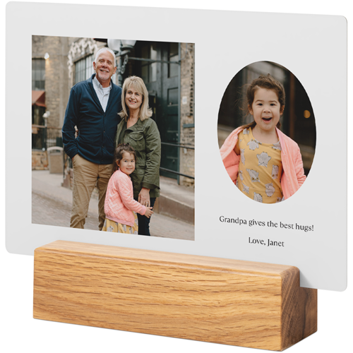 A tabletop metal print is a great personalized addition to coordinate with your modern aesthetic. Pick a black or natural Oak wood block to match your photos and space. This would also make a great gift for friends, parents or grandparents so you can remember favorite memories together.