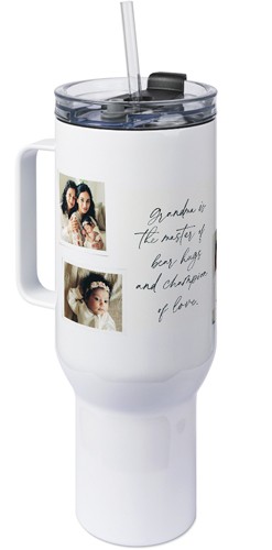 The 40 oz tumbler with handle provides a unique, portable way to stylishly display favorite photos, meaningful quotes, or a gift for any occasion with an easy-grip handle and a tapered base that fits most cup holders. Our tumbler is generously sized featuring double-wall insulation, a BPA-free plastic lid and straw designed to resist splashes with a seal that holds the reusable straw in place, a drink opening, and a full-cover top. Fewer refills and less hassle - enjoy staying hydrated all day long!