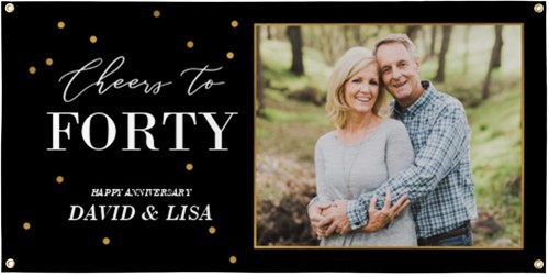 Use this vinyl banner to share news with your neighbors, from celebrating a graduate, a wedding or sports team to spreading the news about an event. Personalize on one side with your choice of horizontal or vertical designs, and hang using the four gold grommets at the corners. No hanging accessories included.
