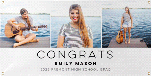 Use this vinyl banner to share news with your neighbors, from celebrating a graduate, a wedding or sports team to spreading the news about an event. Personalize on one side with your choice of horizontal or vertical designs, and hang using the four gold grommets at the corners. No hanging accessories included.