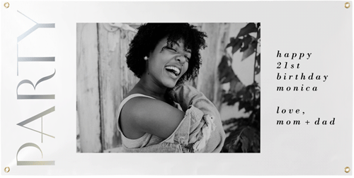 Use this vinyl banner to share news with your neighbors, from celebrating a graduate, a wedding or sports team to spreading the news about an event. Personalize on one side with your choice of horizontal or vertical designs, and hang using the four gold grommets at the corners. No hanging accessories included.